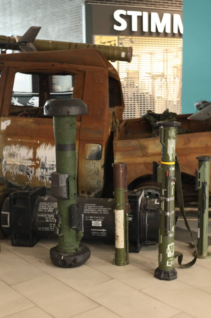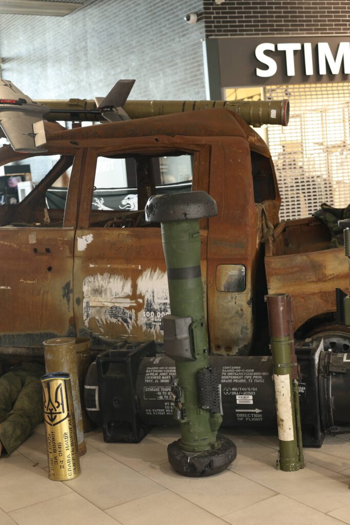 Експозиція пропонує відвідувачам на власні очі побачити реалії сучасних бойових дій. Центральним елементом виставки став привезений з фронту пошкоджений трофейний автомобіль виду пікап. Навколо нього розміщено десятки справжніх військових артефактів: відстріляні гільзи, залишки ракет та ворожих літачків, РПГ, ударні FPV-дрони, а також тубуси від різноманітного озброєння, зокрема від переносних протитанкових комплексів NLAW.